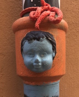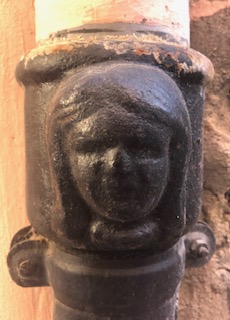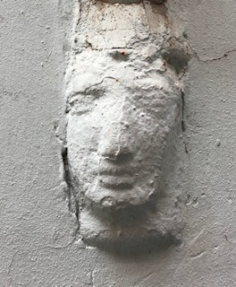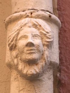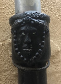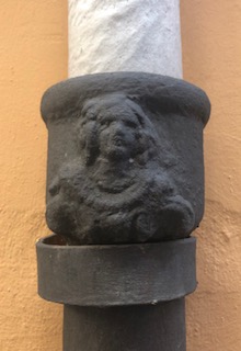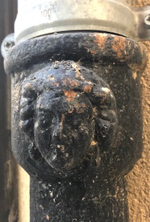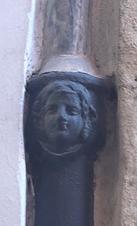 Steve, while walking to Spanish classes a few months back, started noticing little angel faces on building’s rain gutter pipes. He used to see cherub forms or “putti” on building’s bas relief, and in paintings while living in Sicily years ago, and he mentioned these faces to me one day in passing. I had not paid attention, but on my way home from grocery shopping, and having to zig zag and bypass more streets blocked for filming, I saw for the first time, five of these little guardian angel faces on the drain pipes. I smiled at these angel representatives, tucked away, unobserved, who kept watch.