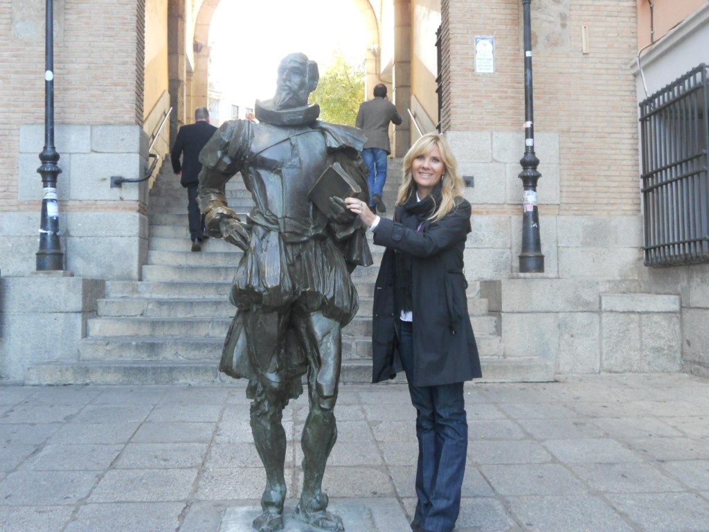 At a World’s Fair in 1974, my parents purchased a delicate and finely carved wood figure of Don Quixote– a perceptive protagonist created by Spanish author Miguel de Cervantes. Dad, to keep the monsters away who spooked me at night, would regale me with tales of Don Quixote fighting off giants, that in actuality were just windmills. Through Cervantes and Don Quixote I learned there are two ways to see things…. the way they are, and the creative way. The creative way helped me turn the shadow monsters on my bedroom wall into Quixote’s faithful friend Sancho Panza and his horse Dapple, who I imagined patrolled the perimeter of my bedroom chasing away any monsters. Shortly after, my dad was in a car accident and with the ensuing traumatic brain injury, he lost ‘the way things are’ for a time. A segment of his prescribed recuperative therapy was artistic, and he carved and created a “Quixote,” which was just a primitive head resting on legs– a head brimming with imagination and breathless for adventures, and two legs to carrying the errant knight on his exploits. My Dad’s Quixote carving frequently pops in my mind’s eye while I am poking around my ancient surroundings in Valencia, Spain, as I don’t just see old stone towers. I see King Jaime entering the city when the Valencian flag flies in the wind; I see his echo on lamp posts, street drains and building friezes proudly displaying the bat crest over a crown– the bat that helped James of Aragon rally to remove the occupiers from the kingdom of Valencia. My head, filled with these wonders, rests solidly on my two legs, legs that earnestly desire to carry me on adventures imagined or otherwise.