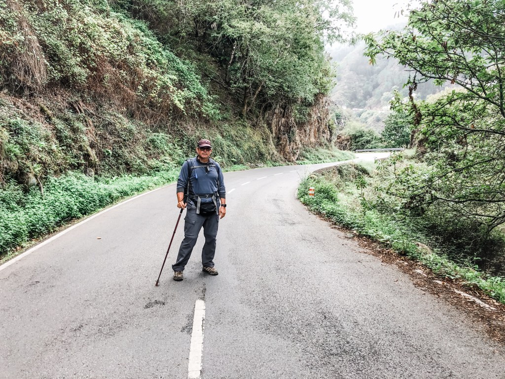Before getting to Salas, we slid walked down one long descent with erosion runoff of scree and mud after a hard rain, but this hurdle did not disrupt Steve’s process or keep him from missing hidden turns. I stood back and watched the magic happen.