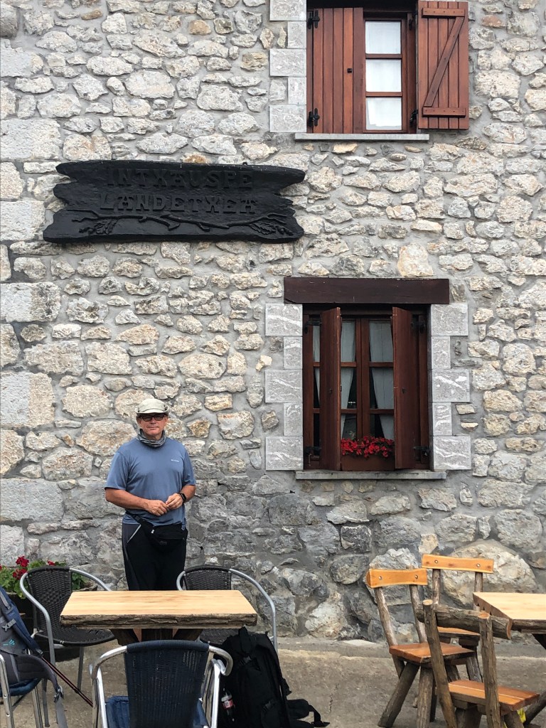 We were one of the last pilgrims to leave the pensione Casa Rural Intxauspe at 8:30 am. Another 93 degree hot day meant earlier was better but we had to get Steve’s blistered feet taped and bolstered before leaving. The Camino stage the day before was brutal and everyone was blistered and hobbling as they left. Within a couple hours, even though we left later, we started coming across pilgrims injured, exhausted and discouraged on the side of the trail. One German woman I had I interacted with and hung her laundry on the line the day before, had tears rolling down her face. (I had read a blog where discouragement and crying kicks in around day 4/5). I stopped on the steep ascent and asked her if she was ok. She nodded, cried some more and wiped her tears. She said in broken English “I think I’m ok now… to go more.”