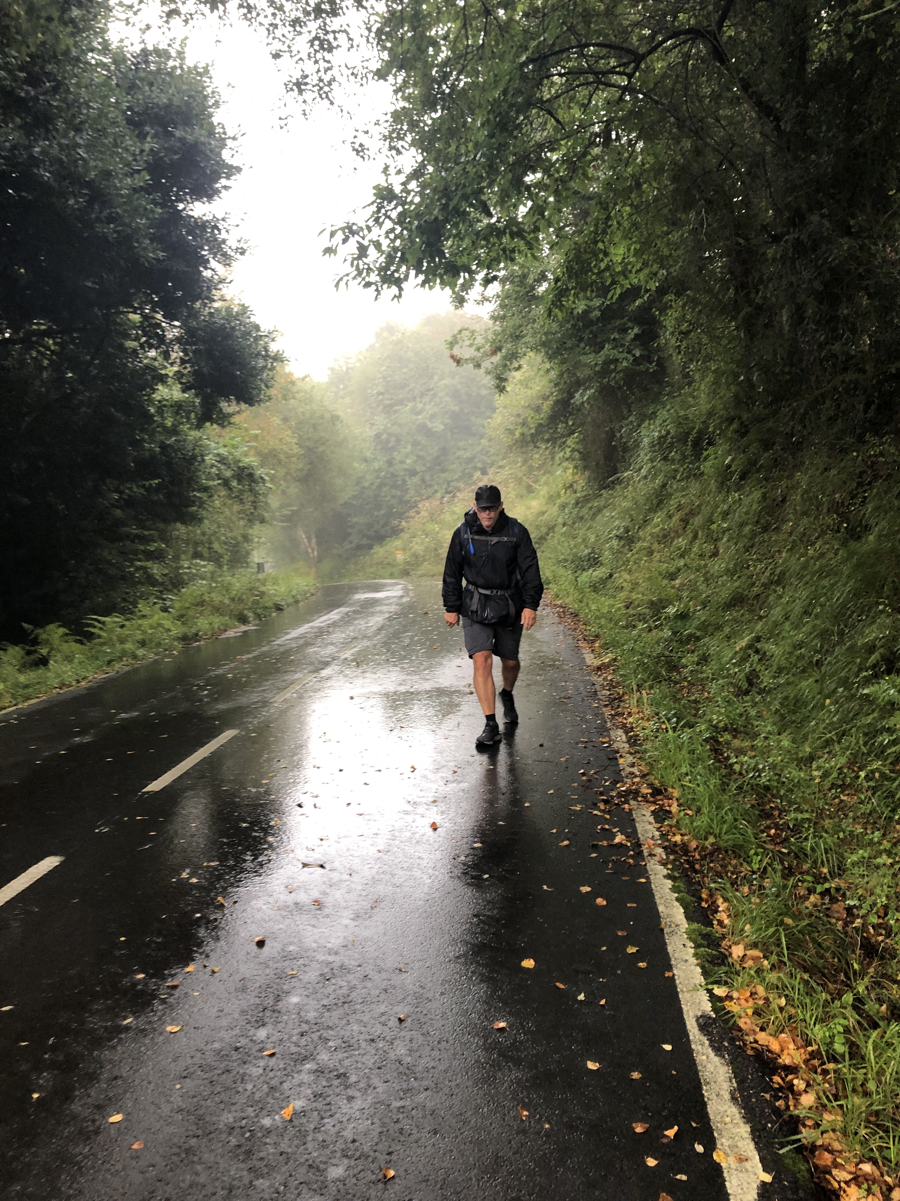 There’s a movie line from a 90s film, A League of Their Own, where Tom Hanks, a new coach of a women’s baseball team, angrily criticizes one of his female players. She cries, and he shouts at her: “There’s no crying in baseball,” and she cries even harder. Walking in the rain today with water dripping off the brim of my hat and running down my face, Steve looked over at me and said “You look pretty.” Laughing at the ridiculousness, I said “You’re joking, right?” I leaned in to give him a peck, and he said “there’s no kissing on the Camino!” and I laughed harder despite looking and feeling like the sodden pony nearby. This got me thinking of the myriad of vying emotions, conditions and responses in any given moment. We always have two ways of acting and responding to stimulus and situations. The baseball player in the movie could have quit, but she used her embarrassment and hurt to work harder and inspired other teammates. Hanks learned to bite his tongue instead of hollering when frustrated, and joked around with his players instead of criticizing to get results. His team rallied and won. Steve could have made the miserable situation worse by barking at me like the dog deep growling at us nearby and made frustrations worse as cars sped past and sprayed us with puddled rain, and muddy water seeped into our shoes, but he chose humor. I could have gotten offended, or snapped back, but laughed instead. We all are a two sided coins and have choices to stimulus. We chose to lumber on happily side by side and pick the best outcome of the duality, the two sides, the kind or the impatient, that we all possess.
