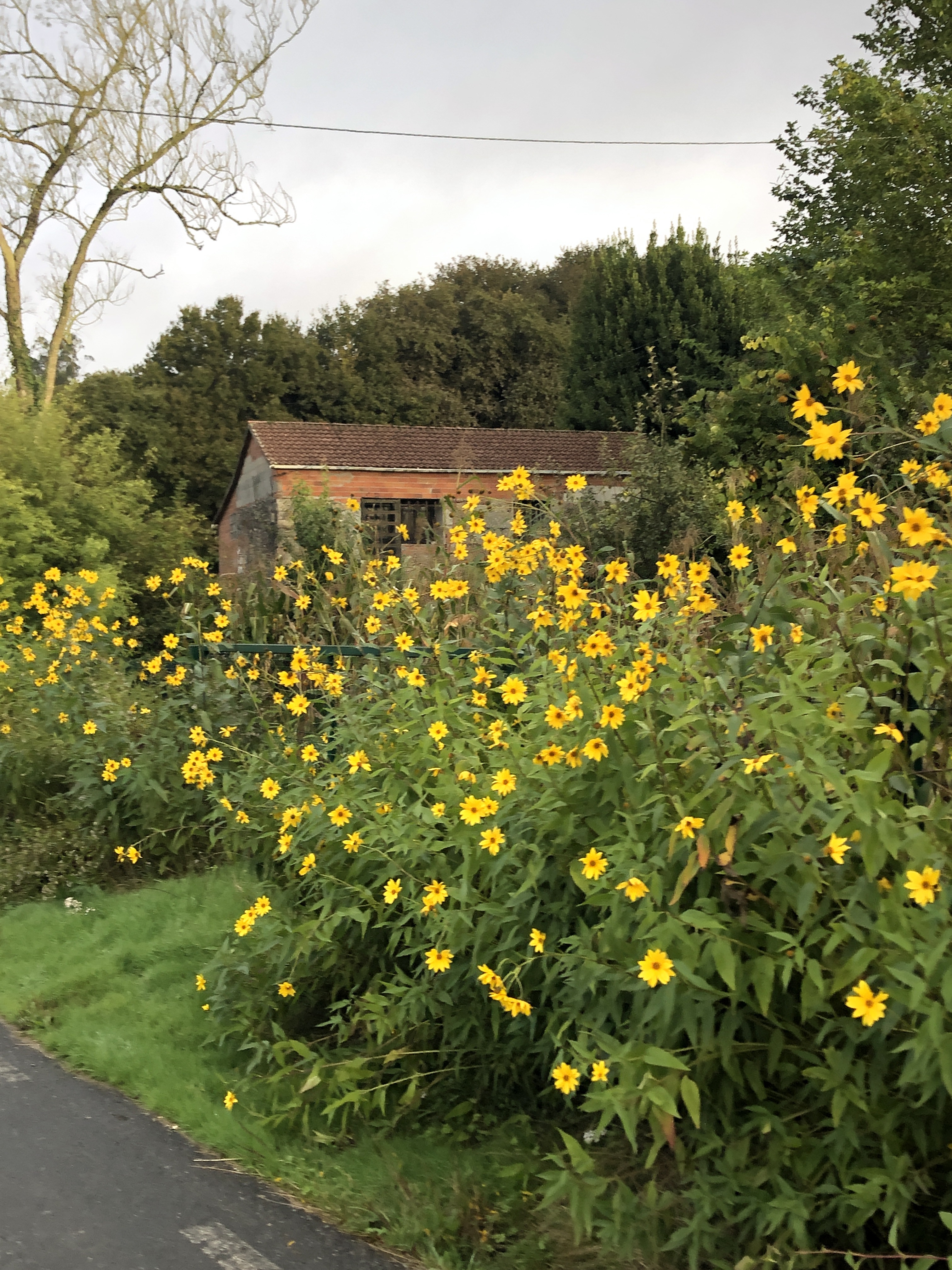 Finally decided to ask another pilgrim to take our photo—- it turned out a bit stiff lol. We have been seeing these mannequins used as scarecrows in gardens. Not a bad idea as they scare me.